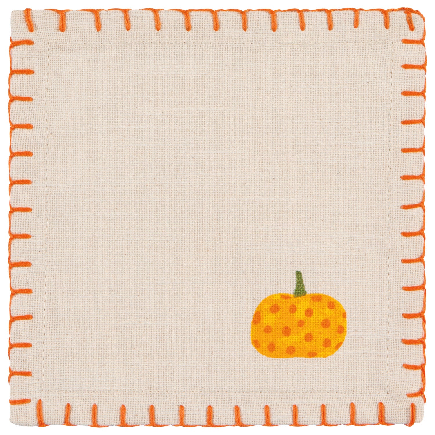 How cute are these?! What better way to quickly look after the spilled tea than with a cute blanket-stitched linen cocktail napkin. Four different motifs adorn the corners: three adorable pumpkins and the requisite black cat. Pair it up with a Hallows Eve Mug and a Hearth and Harvest Tea Trio for the ultimate Thanksgiving hostess gift!