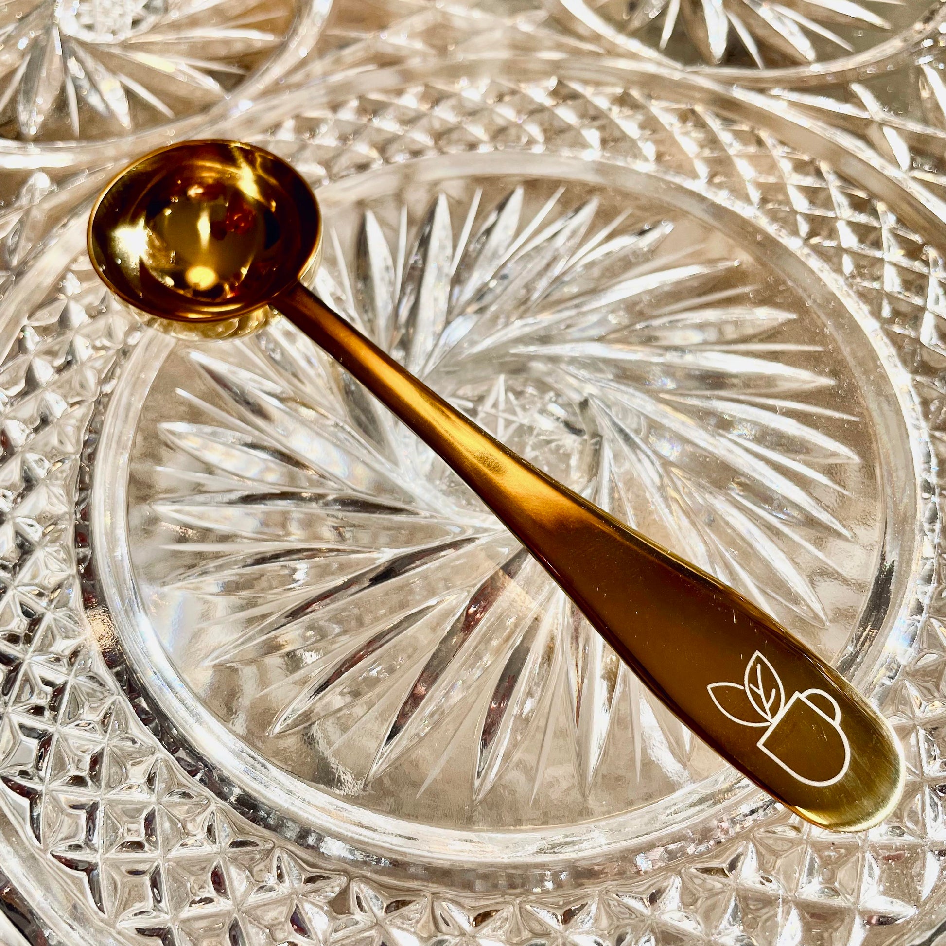 Our beautiful Perfect Scoop measures your 1.5 tsp of tea for a perfect cuppa every time. This scoop packs some heft and has a long enough handle to reach the bottom of the tea tin.